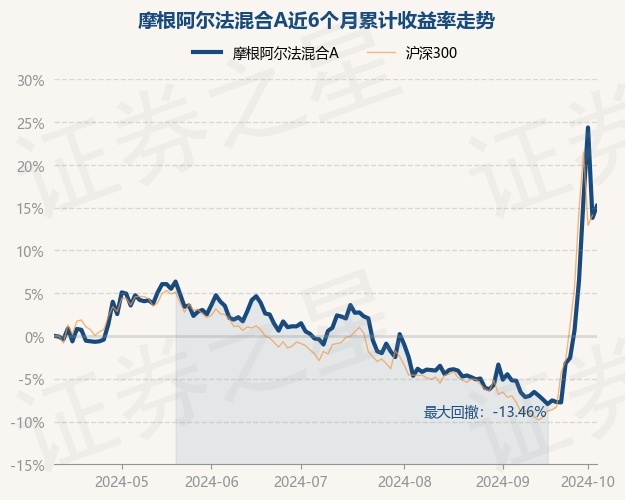 证券之星消息,10月10日,摩根阿尔法混合A最新单位净值为4.0219元,累计净值为5.9419元,较前一交易日上涨1.24%。历史数据显示该基金近1个月上涨23.88%,近3个月上涨14.11%,近6个月上涨15.21%,近1年上涨4.31%。该基金近6个月的累计收益率走势如下图: