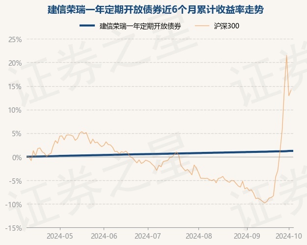 证券之星消息,10月10日,建信荣瑞一年定期开放债券最新单位净值为1.0453元,累计净值为1.0753元,较前一交易日上涨0.0%。历史数据显示该基金近1个月上涨0.18%,近3个月上涨0.61%,近6个月上涨1.24%,近1年上涨2.89%。该基金近6个月的累计收益率走势如下图: