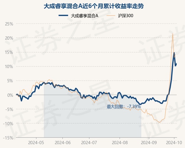 证券之星消息,10月10日,大成睿享混合A最新单位净值为1.492元,累计净值为1.7063元,较前一交易日上涨0.67%。历史数据显示该基金近1个月上涨13.29%,近3个月上涨11.33%,近6个月上涨10.88%,近1年上涨9.08%。该基金近6个月的累计收益率走势如下图: