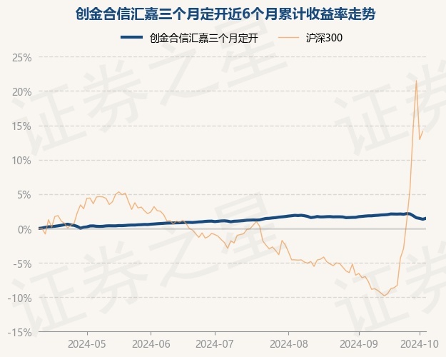 证券之星消息,10月10日,创金合信汇嘉三个月定开最新单位净值为1.056元,累计净值为1.1737元,较前一交易日上涨0.13%。历史数据显示该基金近1个月下跌0.43%,近3个月上涨0.4%,近6个月上涨1.47%,近1年上涨4.19%。该基金近6个月的累计收益率走势如下图: