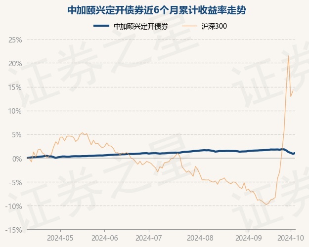 证券之星消息,10月10日,中加颐兴定开债券最新单位净值为1.0139元,累计净值为1.2617元,较前一交易日上涨0.17%。历史数据显示该基金近1个月下跌0.57%,近3个月上涨0.06%,近6个月上涨1.06%,近1年上涨3.61%。该基金近6个月的累计收益率走势如下图: