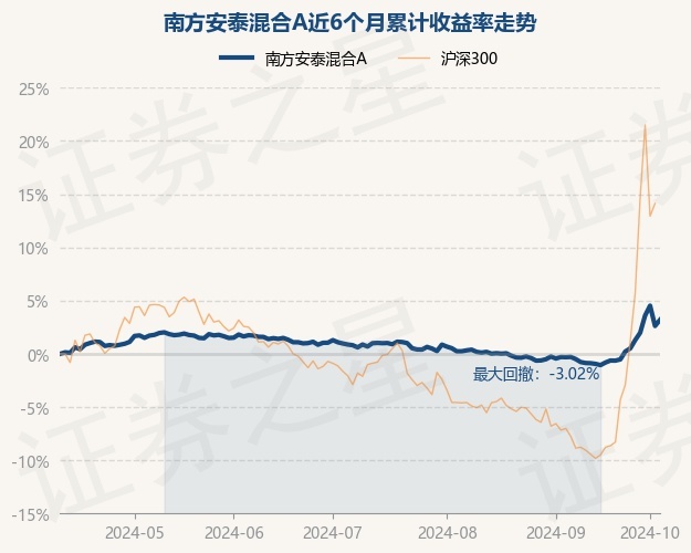 证券之星消息,10月10日,南方安泰混合A最新单位净值为1.1531元,累计净值为1.4889元,较前一交易日上涨0.56%。历史数据显示该基金近1个月上涨4.09%,近3个月上涨2.49%,近6个月上涨3.19%,近1年上涨4.83%。该基金近6个月的累计收益率走势如下图: