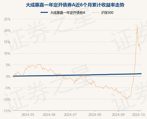 证券之星消息,10月11日,大成惠嘉一年定开债券A最新单位净值为1.0081元,累计净值为1.1209元,较前一交易日上涨0.01%。历史数据显示该基金近1个月上涨0.18%,近3个月上涨0.6%,近6个月上涨1.06%,近1年上涨2.21%。该基金近6个月的累计收益率走势如下图: