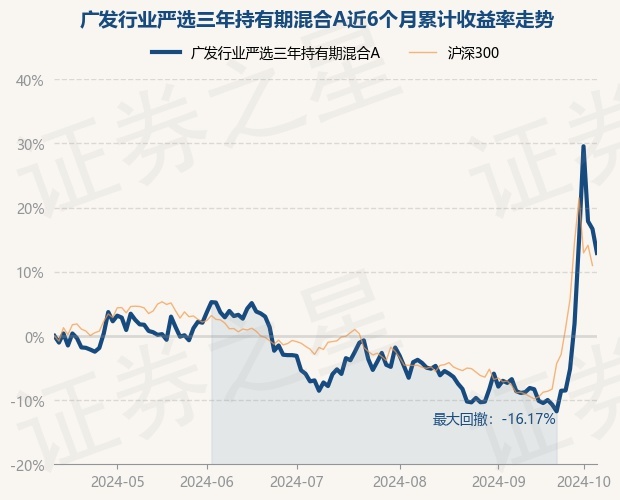 广发行业严选三年持有期混合A为混合型-偏股基金,根据最新一期基金季报显示,该基金资产配置:股票占净值比94.1%,债券占净值比0.64%,现金占净值比5.39%。基金十大重仓股如下: