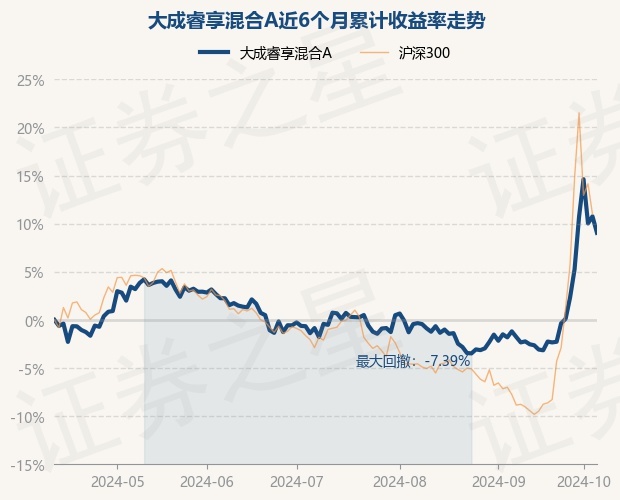 证券之星消息,10月11日,大成睿享混合A最新单位净值为1.469元,累计净值为1.6833元,较前一交易日下跌1.54%。历史数据显示该基金近1个月上涨11.88%,近3个月上涨8.24%,近6个月上涨9.05%,近1年上涨6.55%。该基金近6个月的累计收益率走势如下图: