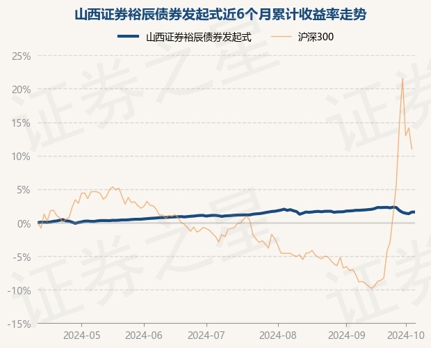 山西证券裕辰债券发起式为债券型-混合一级基金,根据最新一期基金季报显示,该基金资产配置:无股票类资产,债券占净值比120.87%,现金占净值比0.07%。