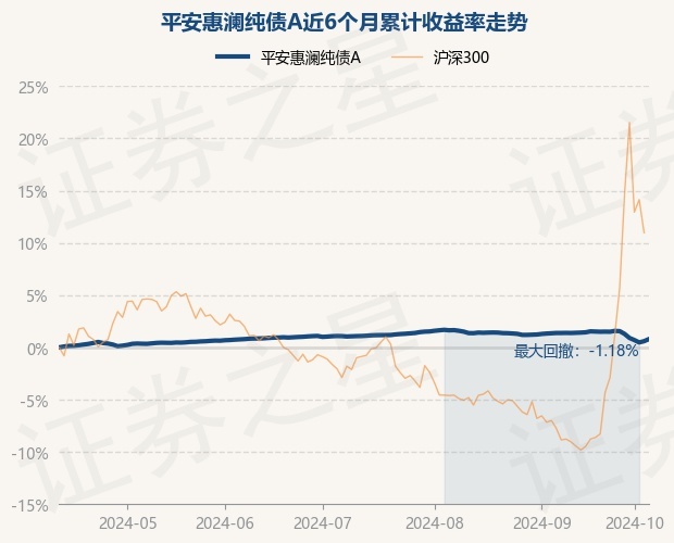 证券之星消息,10月11日,平安惠澜纯债A最新单位净值为1.1048元,累计净值为1.1898元,较前一交易日上涨0.2%。历史数据显示该基金近1个月下跌0.59%,近3个月下跌0.29%,近6个月上涨0.8%,近1年上涨3.25%。该基金近6个月的累计收益率走势如下图: