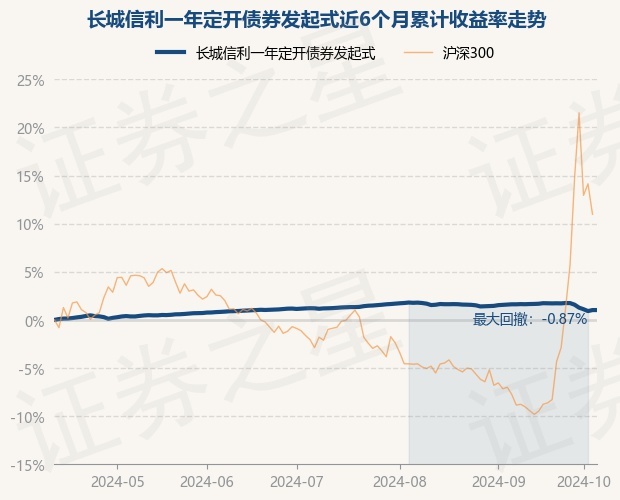 证券之星消息,10月11日,长城信利一年定开债券发起式最新单位净值为1.0489元,累计净值为1.0814元,较前一交易日上涨0.0%。历史数据显示该基金近1个月下跌0.46%,近3个月下跌0.04%,近6个月上涨1.19%,近1年上涨3.9%。该基金近6个月的累计收益率走势如下图: