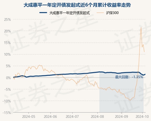 证券之星消息,10月11日,大成惠平一年定开债发起式最新单位净值为1.0328元,累计净值为1.1388元,较前一交易日上涨0.23%。历史数据显示该基金近1个月下跌0.75%,近3个月下跌0.19%,近6个月上涨1.37%,近1年上涨3.85%。该基金近6个月的累计收益率走势如下图: