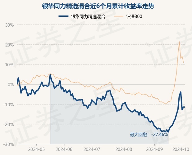 证券之星消息,10月11日,银华同力精选混合最新单位净值为0.7956元,累计净值为0.7956元,较前一交易日上涨0.0%。历史数据显示该基金近1个月上涨14.66%,近3个月下跌6.6%,近6个月下跌12.19%,近1年下跌9.51%。该基金近6个月的累计收益率走势如下图: