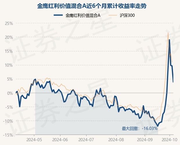 证券之星消息,10月11日,金鹰红利价值混合A最新单位净值为1.749元,累计净值为3.5615元,较前一交易日下跌5.2%。历史数据显示该基金近1个月上涨14.49%,近3个月上涨2.88%,近6个月上涨3.91%,近1年下跌3.36%。该基金近6个月的累计收益率走势如下图: