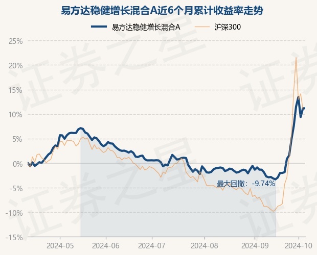 证券之星消息,10月11日,易方达稳健增长混合A最新单位净值为0.8967元,累计净值为0.8967元,较前一交易日上涨0.0%。历史数据显示该基金近1个月上涨13.66%,近3个月上涨9.73%,近6个月上涨10.46%,近1年上涨8.3%。该基金近6个月的累计收益率走势如下图: