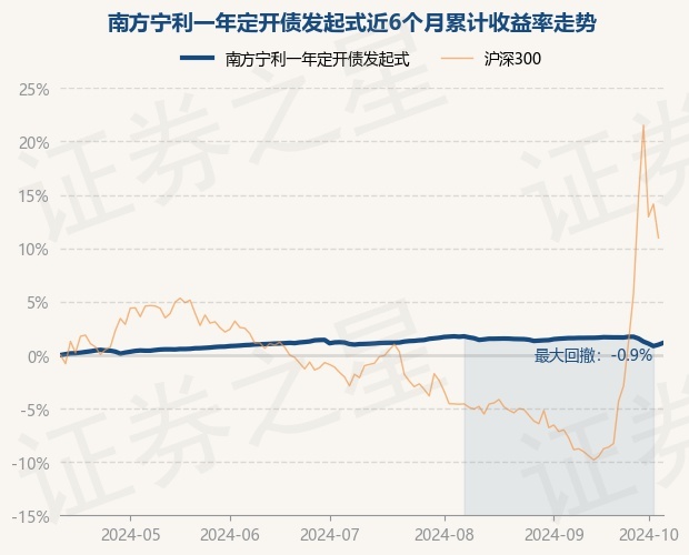 证券之星消息,10月11日,南方宁利一年定开债发起式最新单位净值为1.0312元,累计净值为1.1597元,较前一交易日上涨0.17%。历史数据显示该基金近1个月下跌0.46%,近3个月上涨0.09%,近6个月上涨1.15%,近1年上涨4.17%。该基金近6个月的累计收益率走势如下图: