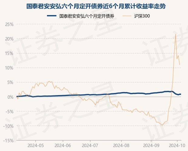 证券之星消息,10月11日,国泰君安安弘六个月定开债券最新单位净值为1.0322元,累计净值为1.0671元,较前一交易日上涨0.0%。历史数据显示该基金近1个月下跌0.45%,近3个月上涨0.34%,近6个月上涨1.01%,近1年上涨3.63%。该基金近6个月的累计收益率走势如下图: