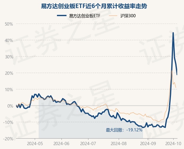 证券之星消息,10月11日,易方达创业板ETF最新单位净值为2.0619元,累计净值为2.3621元,较前一交易日下跌5.06%。历史数据显示该基金近1个月上涨34.77%,近3个月上涨24.7%,近6个月上涨18.98%,近1年上涨5.58%。该基金近6个月的累计收益率走势如下图: