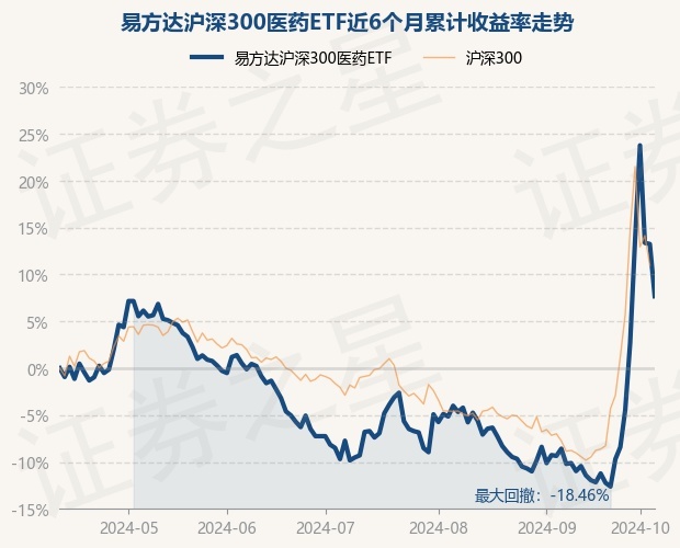 证券之星消息,10月11日,易方达沪深300医药ETF最新单位净值为0.3788元,累计净值为1.5152元,较前一交易日下跌4.92%。历史数据显示该基金近1个月上涨20.22%,近3个月上涨15.52%,近6个月上涨7.67%,近1年下跌12.98%。该基金近6个月的累计收益率走势如下图: