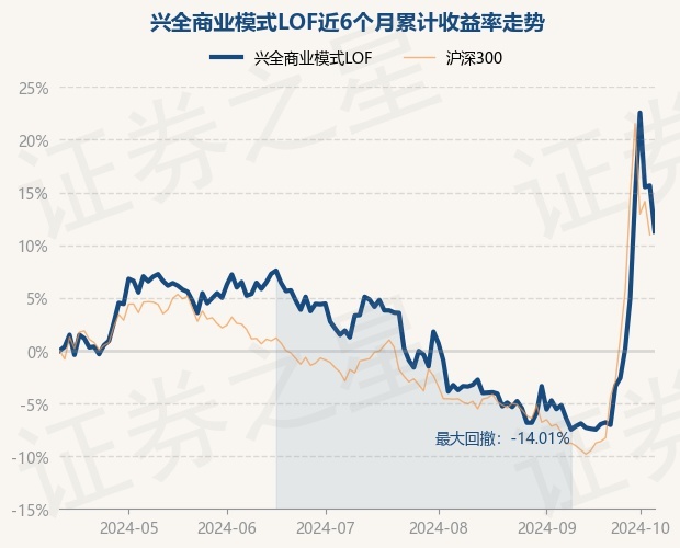 证券之星消息,10月11日,兴全商业模式LOF最新单位净值为3.272元,累计净值为4.132元,较前一交易日下跌3.76%。历史数据显示该基金近1个月上涨19.55%,近3个月上涨5.89%,近6个月上涨11.29%,近1年上涨4.67%。该基金近6个月的累计收益率走势如下图: