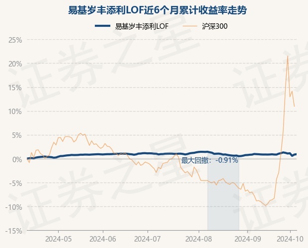 证券之星消息,10月11日,易基岁丰添利LOF最新单位净值为1.647元,累计净值为2.558元,较前一交易日上涨0.07%。历史数据显示该基金近1个月上涨0.07%,近3个月下跌0.1%,近6个月上涨0.94%,近1年上涨3.64%。该基金近6个月的累计收益率走势如下图: