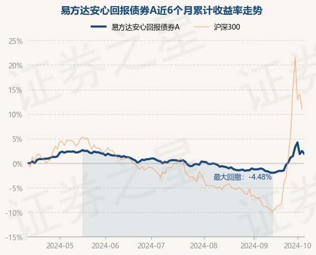 证券之星消息,10月11日,易方达安心回报债券A最新单位净值为1.9384元,累计净值为3.0374元,较前一交易日下跌0.56%。历史数据显示该基金近1个月上涨3.89%,近3个月上涨1.41%,近6个月上涨1.91%,近1年上涨3.06%。该基金近6个月的累计收益率走势如下图: