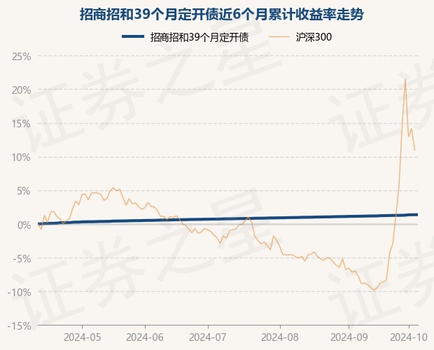 证券之星消息,10月11日,招商招和39个月定开债最新单位净值为1.0027元,累计净值为1.1349元,较前一交易日上涨0.01%。历史数据显示该基金近1个月上涨0.19%,近3个月上涨0.6%,近6个月上涨1.37%,近1年上涨2.81%。该基金近6个月的累计收益率走势如下图: