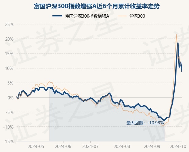 证券之星消息,10月11日,富国沪深300指数增强A最新单位净值为1.564元,累计净值为2.15元,较前一交易日下跌2.74%。历史数据显示该基金近1个月上涨17.33%,近3个月上涨9.07%,近6个月上涨8.91%,近1年上涨7.42%。该基金近6个月的累计收益率走势如下图: