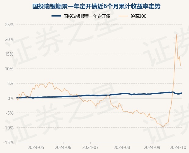证券之星消息,10月11日,国投瑞银顺景一年定开债最新单位净值为1.0432元,累计净值为1.1032元,较前一交易日上涨0.07%。历史数据显示该基金近1个月下跌0.06%,近3个月上涨0.8%,近6个月上涨1.63%,近1年上涨4.3%。该基金近6个月的累计收益率走势如下图:
