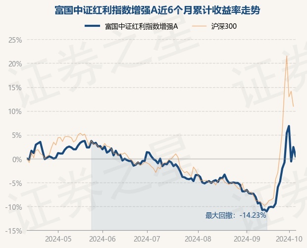 证券之星消息,10月11日,富国中证红利指数增强A最新单位净值为1.028元,累计净值为3.197元,较前一交易日下跌1.91%。历史数据显示该基金近1个月上涨12.6%,近3个月上涨1.58%,近6个月上涨0.49%,近1年上涨7.88%。该基金近6个月的累计收益率走势如下图: