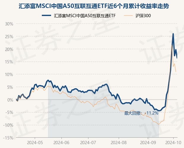 证券之星消息,10月11日,汇添富MSCI中国A50互联互通ETF最新单位净值为0.8398元,累计净值为0.8398元,较前一交易日下跌2.68%。历史数据显示该基金近1个月上涨21.45%,近3个月上涨11.25%,近6个月上涨16.43%,近1年上涨12.92%。该基金近6个月的累计收益率走势如下图: