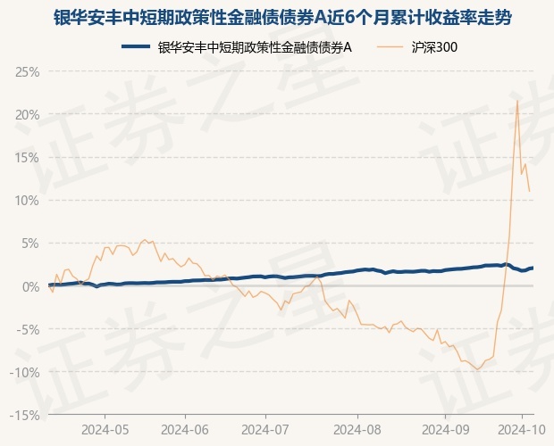 证券之星消息,10月11日,银华安丰中短期政策性金融债债券A最新单位净值为1.0506元,累计净值为1.1976元,较前一交易日上涨0.07%。历史数据显示该基金近1个月下跌0.08%,近3个月上涨1.02%,近6个月上涨2.02%,近1年上涨4.83%。该基金近6个月的累计收益率走势如下图: