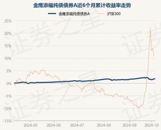 证券之星消息,10月11日,金鹰添福纯债债券A最新单位净值为1.0207元,累计净值为1.0437元,较前一交易日上涨0.04%。历史数据显示该基金近1个月下跌0.15%,近3个月上涨0.89%,近6个月上涨1.74%,近1年上涨4.35%。该基金近6个月的累计收益率走势如下图: