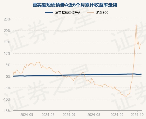 证券之星消息,10月14日,嘉实超短债债券A最新单位净值为1.0526元,累计净值为1.142元,较前一交易日上涨0.0%。历史数据显示该基金近1个月上涨0.35%,近3个月上涨0.41%,近6个月上涨0.97%,近1年上涨2.69%。该基金近6个月的累计收益率走势如下图: