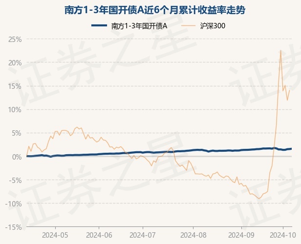证券之星消息,10月14日,南方1-3年国开债A最新单位净值为1.0293元,累计净值为1.1893元,较前一交易日上涨0.06%。历史数据显示该基金近1个月上涨0.02%,近3个月上涨0.7%,近6个月上涨1.57%,近1年上涨3.75%。该基金近6个月的累计收益率走势如下图: