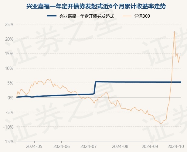 证券之星消息,10月14日,兴业嘉福一年定开债券发起式最新单位净值为1.0665元,累计净值为1.1651元,较前一交易日上涨0.0%。历史数据显示该基金近1个月上涨0.0%,近3个月下跌0.08%,近6个月上涨5.19%,近1年上涨8.05%。该基金近6个月的累计收益率走势如下图: