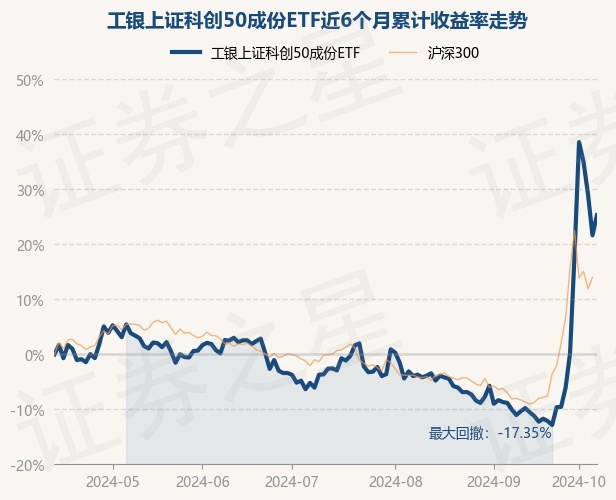 证券之星消息,10月14日,工银上证科创50成份ETF最新单位净值为0.953元,累计净值为0.6641元,较前一交易日上涨3.0%。历史数据显示该基金近1个月上涨41.12%,近3个月上涨28.61%,近6个月上涨25.3%,近1年上涨3.6%。该基金近6个月的累计收益率走势如下图: