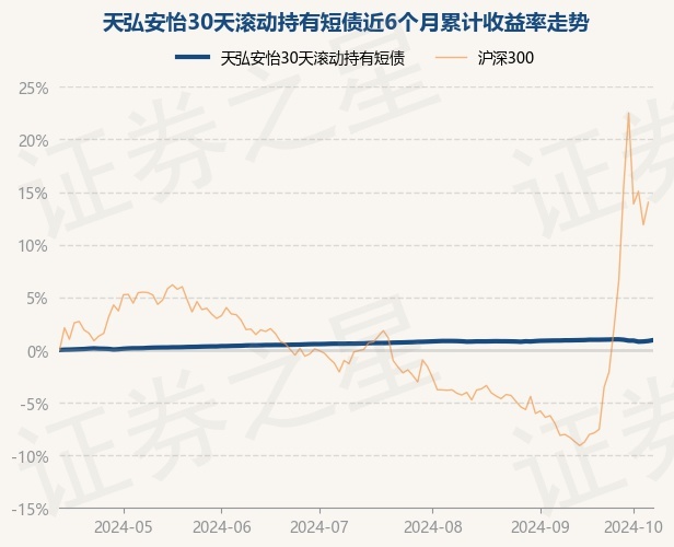 证券之星消息,10月14日,天弘安怡30天滚动持有短债最新单位净值为1.1017元,累计净值为1.1017元,较前一交易日上涨0.08%。历史数据显示该基金近1个月下跌0.01%,近3个月上涨0.31%,近6个月上涨0.93%,近1年上涨2.55%。该基金近6个月的累计收益率走势如下图: