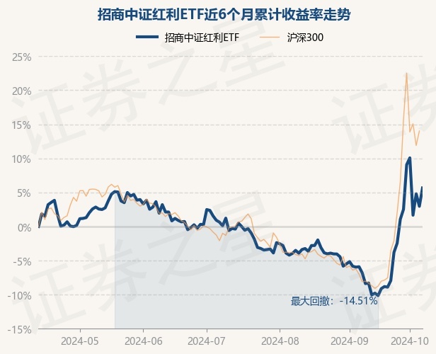 证券之星消息,10月14日,招商中证红利ETF最新单位净值为1.5653元,累计净值为1.8653元,较前一交易日上涨2.62%。历史数据显示该基金近1个月上涨17.58%,近3个月上涨6.06%,近6个月上涨5.63%,近1年上涨11.84%。该基金近6个月的累计收益率走势如下图:
