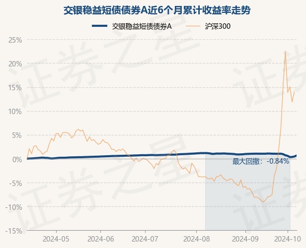 证券之星消息,10月14日,交银稳益短债债券A最新单位净值为1.0224元,累计净值为1.0494元,较前一交易日上涨0.21%。历史数据显示该基金近1个月下跌0.38%,近3个月下跌0.14%,近6个月上涨0.66%,近1年上涨2.54%。该基金近6个月的累计收益率走势如下图: