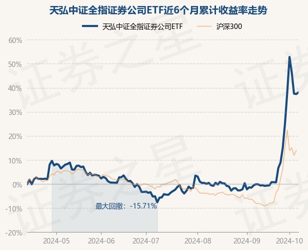 证券之星消息,10月14日,天弘中证全指证券公司ETF最新单位净值为1.0204元,累计净值为1.0204元,较前一交易日上涨0.49%。历史数据显示该基金近1个月上涨38.98%,近3个月上涨44.49%,近6个月上涨38.08%,近1年上涨20.13%。该基金近6个月的累计收益率走势如下图: