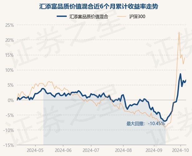 证券之星消息,10月14日,汇添富品质价值混合最新单位净值为1.1644元,累计净值为1.1644元,较前一交易日上涨0.72%。历史数据显示该基金近1个月上涨14.35%,近3个月上涨4.18%,近6个月上涨6.5%,近1年上涨11.31%。该基金近6个月的累计收益率走势如下图: