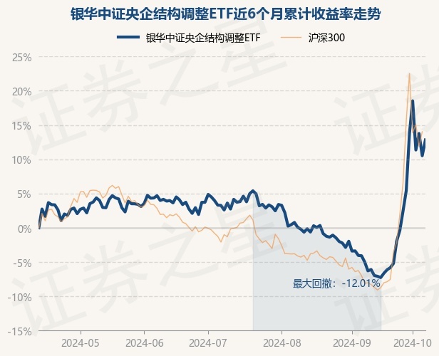 证券之星消息,10月14日,银华中证央企结构调整ETF最新单位净值为1.4811元,累计净值为1.4811元,较前一交易日上涨2.09%。历史数据显示该基金近1个月上涨21.66%,近3个月上涨8.77%,近6个月上涨12.82%,近1年上涨12.46%。该基金近6个月的累计收益率走势如下图: