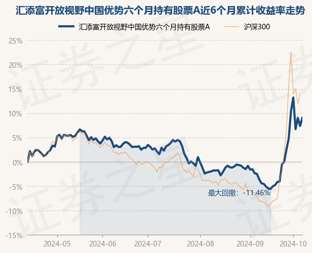证券之星消息,10月14日,汇添富开放视野中国优势六个月持有股票A最新单位净值为0.6719元,累计净值为0.6719元,较前一交易日上涨1.59%。历史数据显示该基金近1个月上涨15.49%,近3个月上涨5.43%,近6个月上涨9.07%,近1年上涨6.92%。该基金近6个月的累计收益率走势如下图: