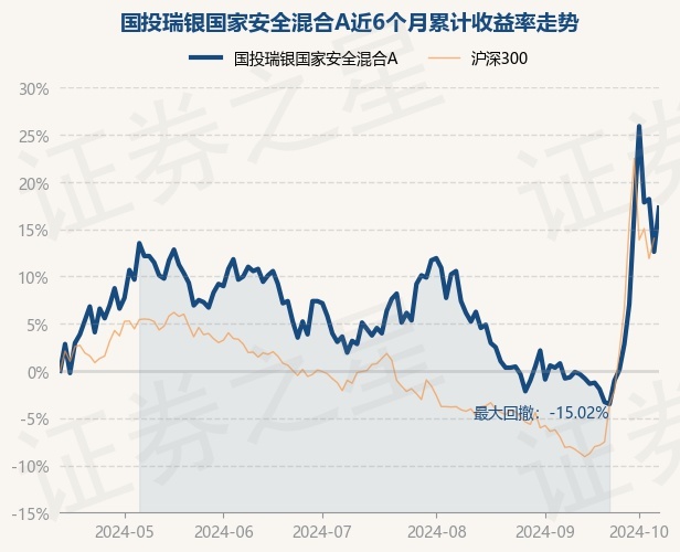 证券之星消息,10月14日,国投瑞银国家安全混合A最新单位净值为1.032元,累计净值为1.191元,较前一交易日上涨4.14%。历史数据显示该基金近1个月上涨18.89%,近3个月上涨12.3%,近6个月上涨17.27%,近1年上涨3.61%。该基金近6个月的累计收益率走势如下图: