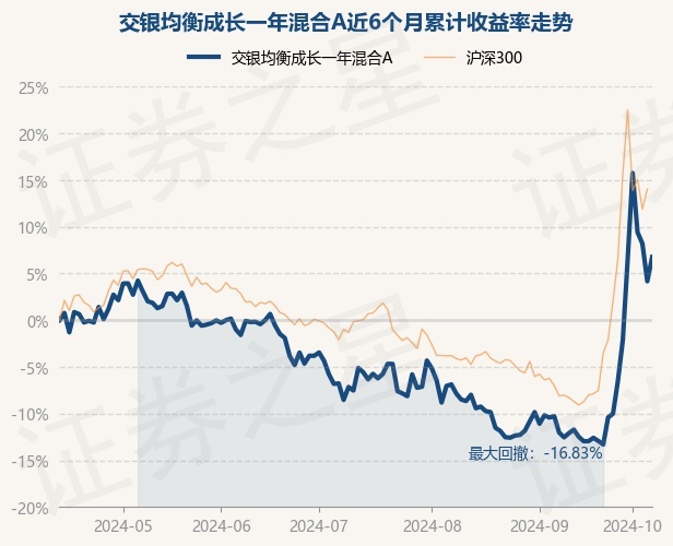证券之星消息,10月14日,交银均衡成长一年混合A最新单位净值为0.7925元,累计净值为0.8555元,较前一交易日上涨2.5%。历史数据显示该基金近1个月上涨22.66%,近3个月上涨13.07%,近6个月上涨6.76%,近1年下跌1.87%。该基金近6个月的累计收益率走势如下图: