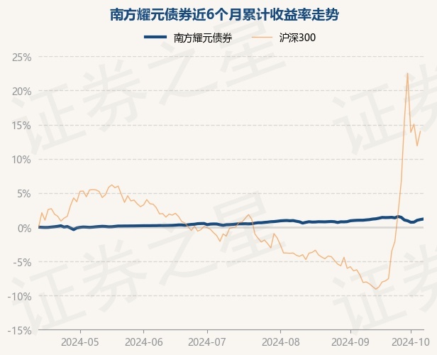 证券之星消息,10月14日,南方耀元债券最新单位净值为1.0194元,累计净值为1.0524元,较前一交易日上涨0.08%。历史数据显示该基金近1个月下跌0.12%,近3个月上涨0.74%,近6个月上涨1.19%,近1年上涨3.21%。该基金近6个月的累计收益率走势如下图: