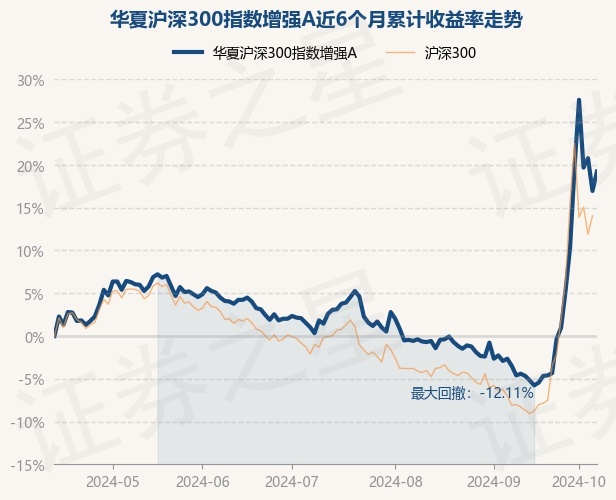 证券之星消息,10月14日,华夏沪深300指数增强A最新单位净值为1.836元,累计净值为1.836元,较前一交易日上涨1.94%。历史数据显示该基金近1个月上涨26.53%,近3个月上涨15.69%,近6个月上涨19.22%,近1年上涨12.36%。该基金近6个月的累计收益率走势如下图:
