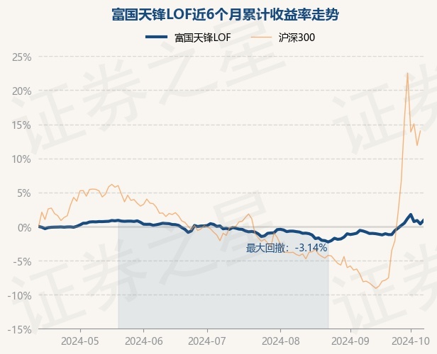 证券之星消息,10月14日,富国天锋LOF最新单位净值为1.1044元,累计净值为1.6839元,较前一交易日上涨0.51%。历史数据显示该基金近1个月上涨2.05%,近3个月上涨1.14%,近6个月上涨0.89%,近1年上涨2.59%。该基金近6个月的累计收益率走势如下图: