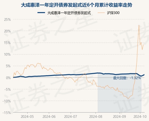 证券之星消息,10月14日,大成惠泽一年定开债券发起式最新单位净值为1.0235元,累计净值为1.1177元,较前一交易日上涨0.28%。历史数据显示该基金近1个月下跌0.32%,近3个月下跌0.02%,近6个月上涨1.22%,近1年上涨4.32%。该基金近6个月的累计收益率走势如下图: