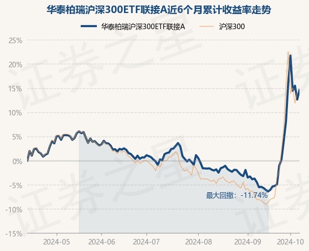 证券之星消息,10月14日,华泰柏瑞沪深300ETF联接A最新单位净值为0.9715元,累计净值为1.8845元,较前一交易日上涨1.73%。历史数据显示该基金近1个月上涨22.4%,近3个月上涨12.81%,近6个月上涨14.58%,近1年上涨8.97%。该基金近6个月的累计收益率走势如下图: