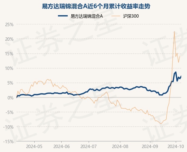 证券之星消息,10月14日,易方达瑞锦混合A最新单位净值为1.2552元,累计净值为1.2952元,较前一交易日上涨0.74%。历史数据显示该基金近1个月上涨6.34%,近3个月上涨4.38%,近6个月上涨7.15%,近1年上涨11.53%。该基金近6个月的累计收益率走势如下图: