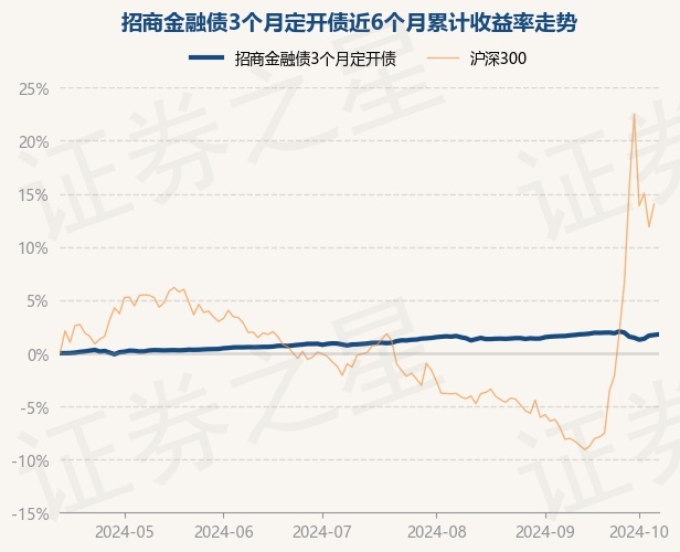 证券之星消息,10月14日,招商金融债3个月定开债最新单位净值为1.0338元,累计净值为1.1301元,较前一交易日上涨0.06%。历史数据显示该基金近1个月下跌0.07%,近3个月上涨0.86%,近6个月上涨1.77%,近1年上涨4.35%。该基金近6个月的累计收益率走势如下图: